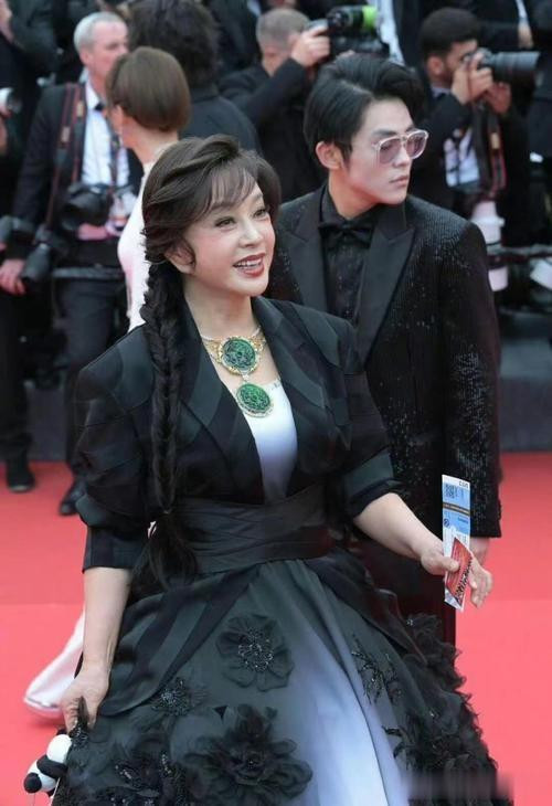 当刘晓庆出现在红毯入口时,现场的闪光灯便如繁星般闪烁不停。她身着一袭华丽的礼服,那精致的剪裁与细腻的面料,衬托出她依旧曼妙的身姿。妆容精致而得体,眉眼间透露出自信与从容。但最让人意想不到的是,她没有像大多数嘉宾那样,迈着优雅而缓慢的步伐,缓缓前行,而是轻轻提起裙摆,迈开步伐,一路小跑着向红毯中央奔去。她的脸上洋溢着灿烂的笑容,眼神中闪烁着兴奋与喜悦,仿佛一个天真烂漫的孩子,尽情享受着这欢乐的时刻。