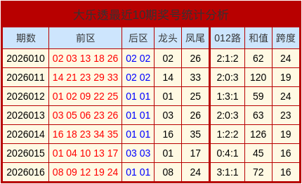 后区分析:近7期后区奖号质合比为8:6,质数表现较强;上期开出后区号码为01、06,属于【质+合】数;本期预测后区号码为07,10;
