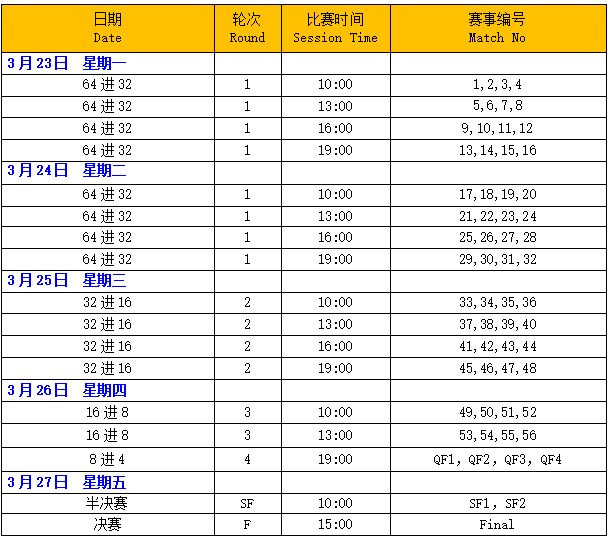 比赛赛程表